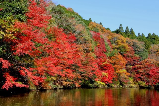 Lake Kameyama is located in the southern part of Chiba Prefecture, some 60km directly southeast of Tokyo. It is known as the final reaching area of the "autumn leaves front" in the Tokyo metropolitan area. The best season to view the autumn leaves there is late November to early December.